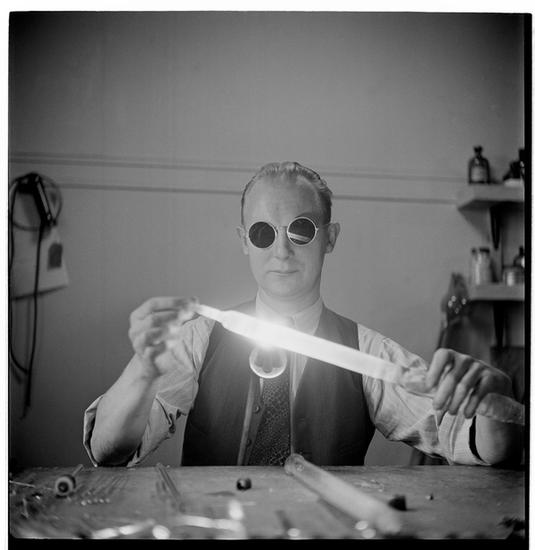 Columbia University [Professor working with bright light.]