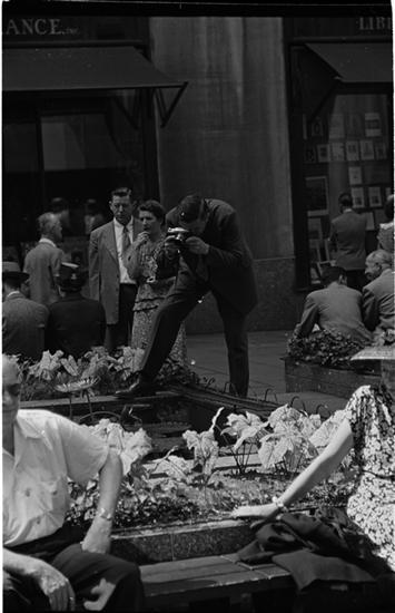 Photography - Everyone is Taking Pictures [Woman photographing lily pads in Rockefeller Center.]