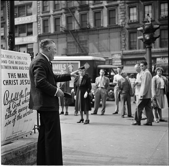 People Mugging [Man preaching on the sidewalk.]