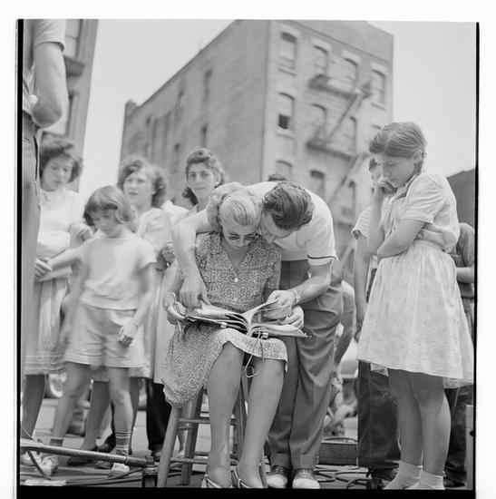 Naked City [Movie crew, with actor.]