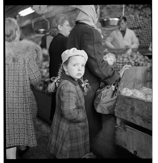 Children- What they do when mothers are shopping [Child looking at onions at a market.]