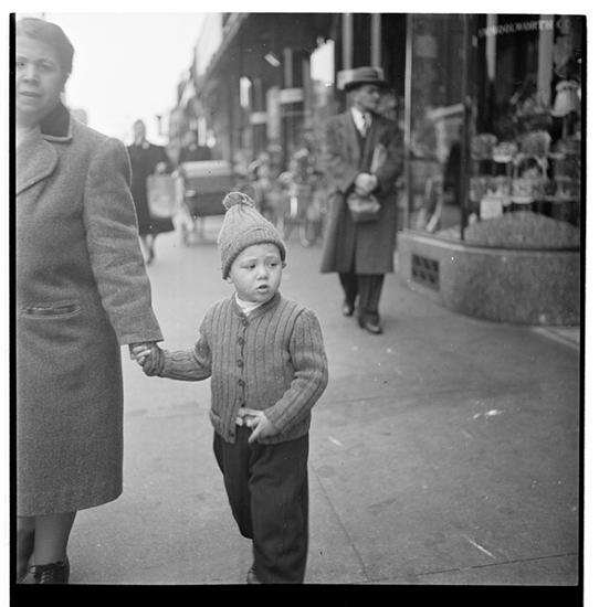 Children- What they do when mothers are shopping [Mother and child walking down the street.]