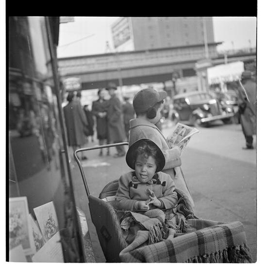 Children- What they do when mothers are shopping [Child in a carriage outside a store.]