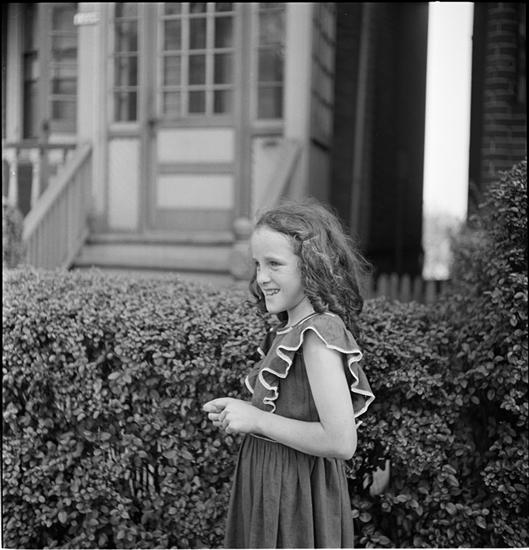 People Mugging [Girl looking at bushes on the sidewalk.]