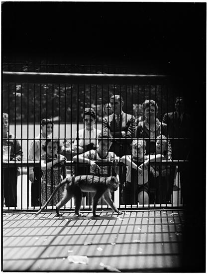 How People Look to Monkeys [Crowd looking at a monkey cage.]