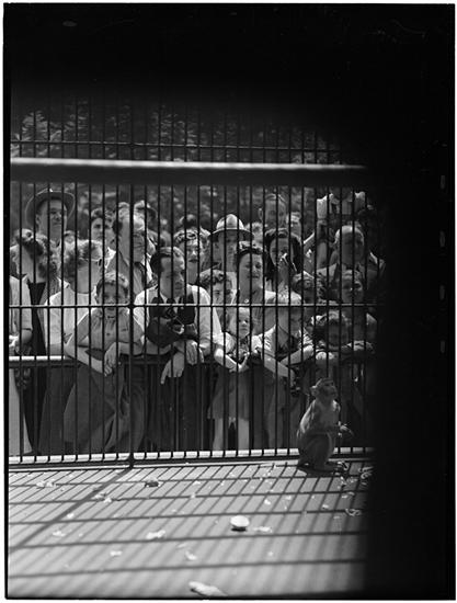 How People Look to Monkeys [Crowd looking at a monkey cage.]