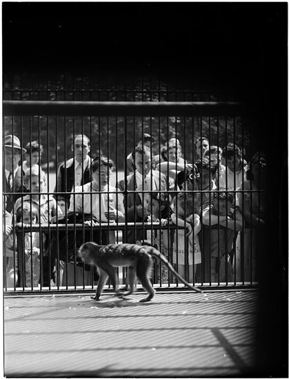 How People Look to Monkeys [Crowd looking at a monkey cage.]