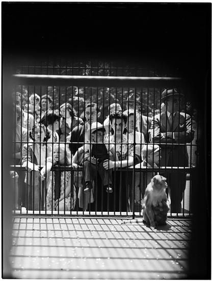 How People Look to Monkeys [Crowd looking at a monkey cage.]