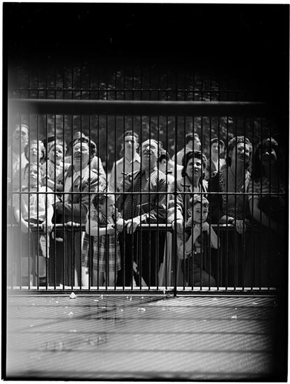 How People Look to Monkeys [Crowd looking at monkeys in a cage.]