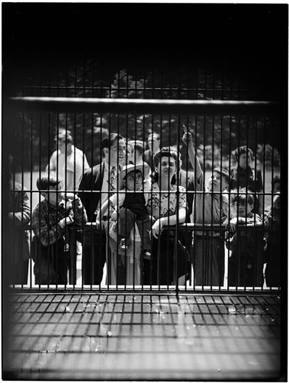 How People Look to Monkeys [Crowd looking at monkeys in a cage.]