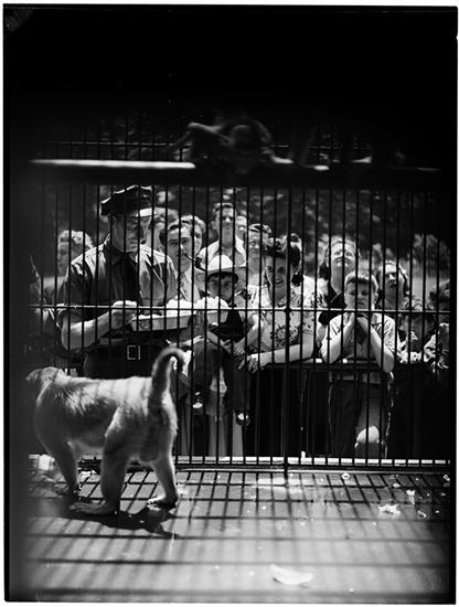How People Look to Monkeys [Crowd looking at a monkey cage.]