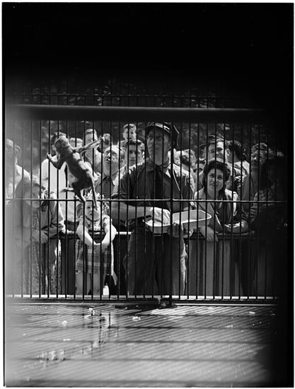 How People Look to Monkeys [Zoo employee feeding monkeys.]