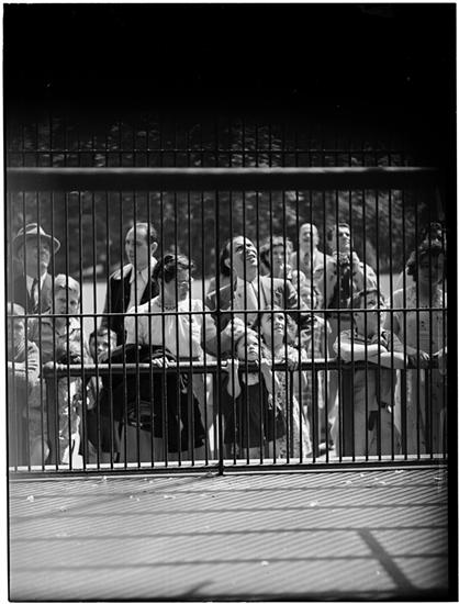 How People Look to Monkeys [Crowd looking at a monkey cage.]