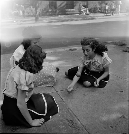 People Mugging [Girls playing jacks on the sidewalk.]