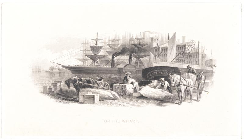 Waterfront. [Horse-drawn delivery wagon on a wharf.]