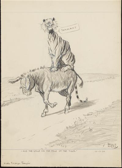 [Political cartoon depicting the investigation of Albert Marinelli.]