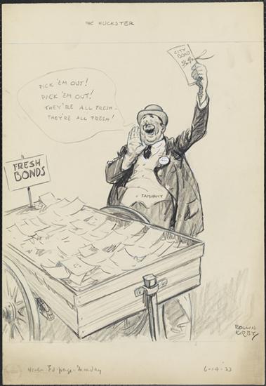 [Political cartoon depicting the investigation of Albert Marinelli.]