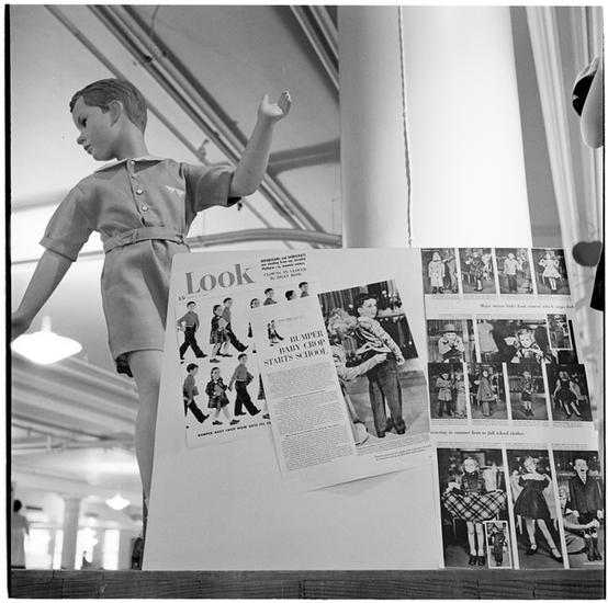 Macy's [Mannequins dressed in children's clothes surrounded by magazine advertisements from LOOK Magazine.]