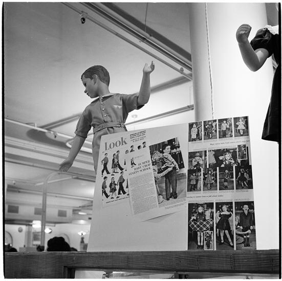 Macy's [Mannequins dressed in children's clothes surrounded by magazine advertisements from LOOK Magazine.]