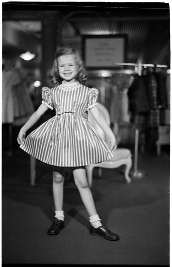 Clothes of Schoolchildren [Girl trying on a dress in a clothing store.]