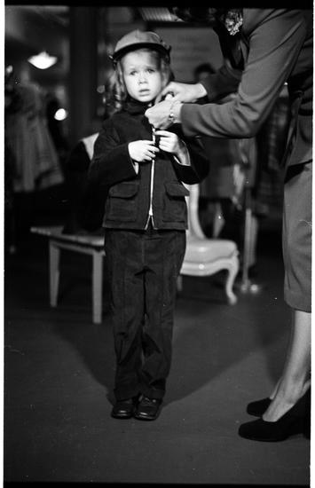 Clothes of Schoolchildren [Boy trying on clothes in a clothing store.]