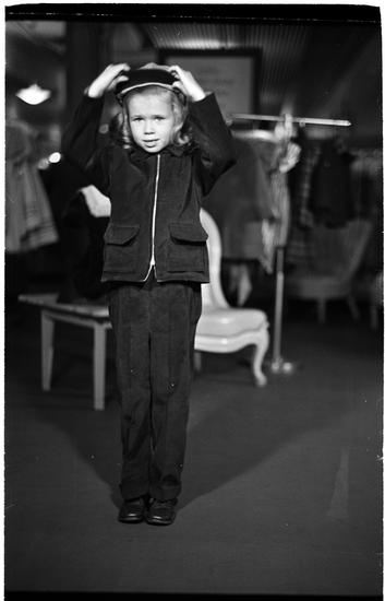 Clothes of Schoolchildren [Girl trying on an outfit in a clothing store.]