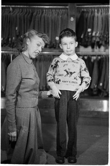 Clothes of Schoolchildren [Boy trying on an outfit.]
