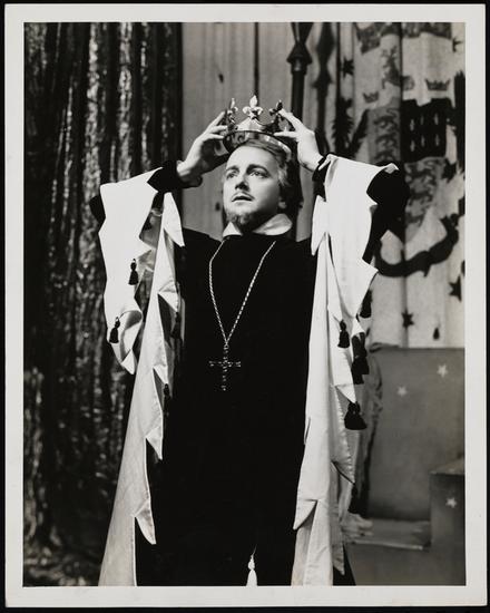 [Maurice Evans as the title role and Frederic Worlock as Bolingbroke (Henry IV) in "King Richard II".]