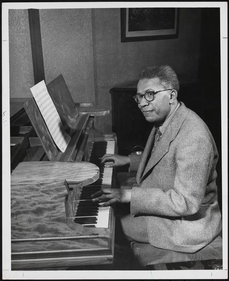 [Hall Johnson on the set of "The Green Pastures".]