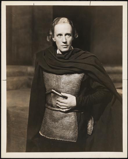 [Mary Servoss as Gertrude and Leslie Howard in the title role of "Hamlet".]