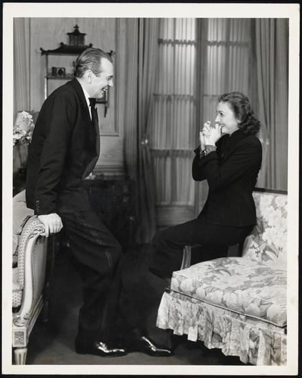 [Raymond Massey as Sir Colenson Ridgeon and Katharine Cornell as Jennifer Dubedat in "The Doctor's Dilemma".]