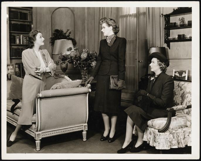 [Katharine Cornell as Stella, Carol Goodner as Lennie Lorrimer and Henry Daniell as Edmund Alexander in "Lovers and Friends".]
