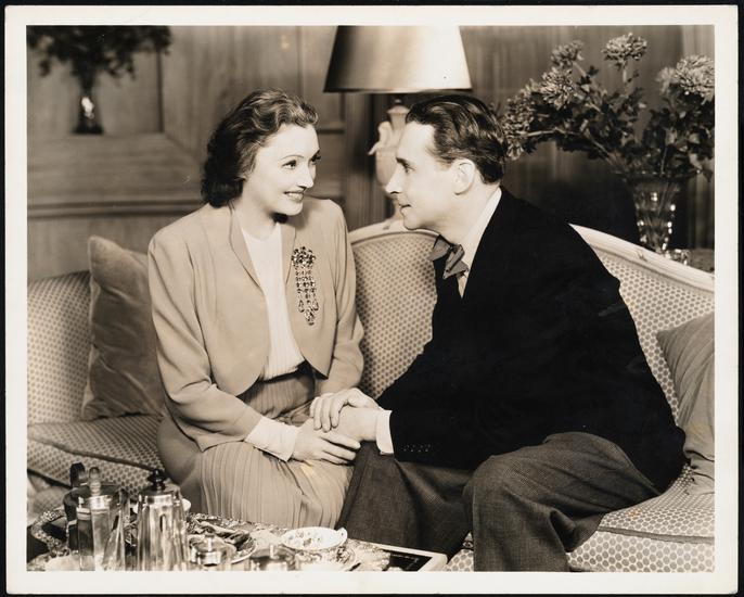 [Katharine Cornell as Stella and Henry Daniell as Edmund Alexander in "Lovers and Friends".]
