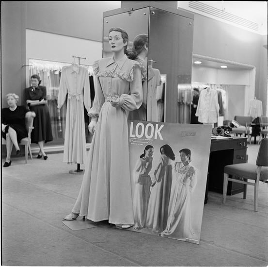 Lord & Taylor Display [A mannequin dressed in a housecoat in front of a LOOK magazine poster.]