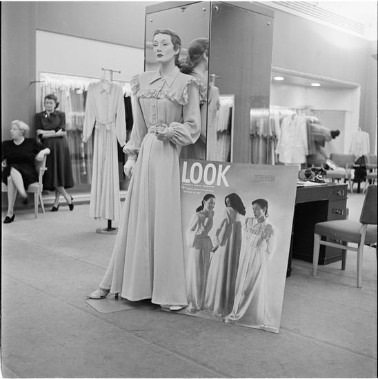 Lord & Taylor Display [A mannequin dressed in a housecoat in front of a LOOK magazine poster.]