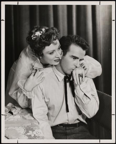 [Lynn Fontanne as Madame Arkadina and Richard Whorf as Konstantin Treplev in "The Seagull".]