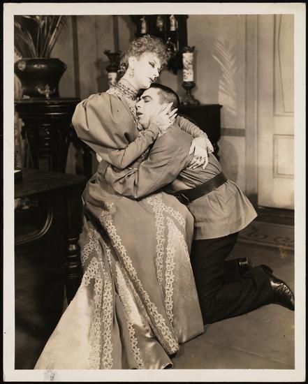 [Alfred Lunt as Harry Van and Lynn Fontanne as Irene in "Idiot's Delight".]