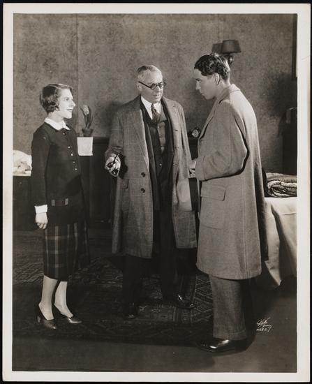 [Humphrey Bogart as Rims O'Neil, Frederick Perry as Mr. Halevy and Ruth Gordon as Bobby in "Saturday's Children".]