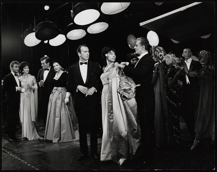 [Diahann Carroll as Barbara Woodruff, Alvin Epstein as Luc Delbert and Noelle Adam as Jeanette Valmy in "No Strings".]