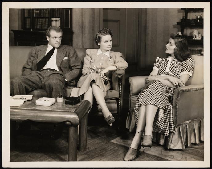 [Van Heflin as Macaulay Connor (Mike) and Katharine Hepburn as Tracy Samatha Lord in "The Philadelphia Story".]