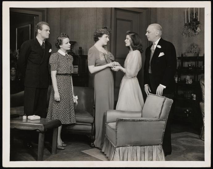 [Nicholas Joy as Seth Lord, Katharine Hepburn as Tracy Samatha Lord and Lenore Lonergan as Dinah Lord in "The Philadelphia Story".]