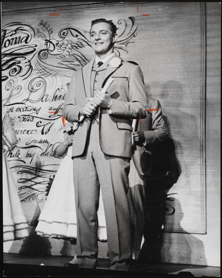[Johnny Laverty performing "The Broken Kimona" sketch in "New Faces of 1956".]