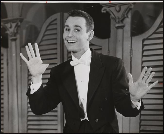 [Bob Shaver performing the "Boy Most Likely to Succeed" sketch in "New Faces of 1956".]