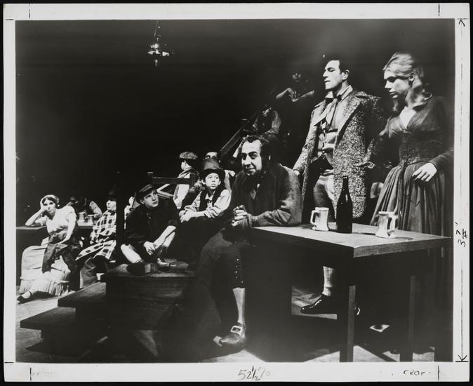 [Unidentified actors playing Mr. Bumble (the Beadle) and Mrs. Corney (the Matron) in "Oliver!".]