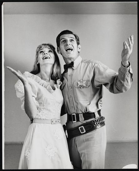 [Ray Danton as Bill Starbuck with Inga Swenson as Lizzie Curry at a rehearsal for "110 in the Shade".]