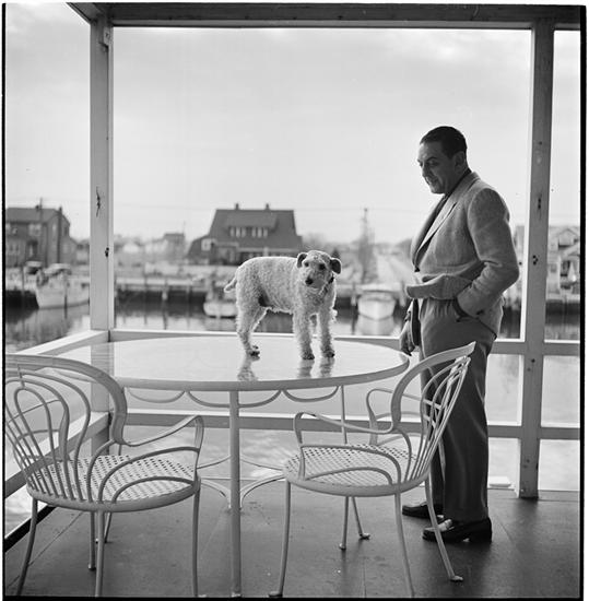 Guy Lombardo [Guy Lombardo, with a dog, on a porch.]