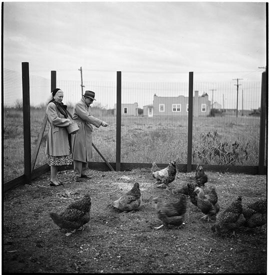 Guy Lombardo [Guy Lombardo and Lilliebell Glenn feeding chickens.]