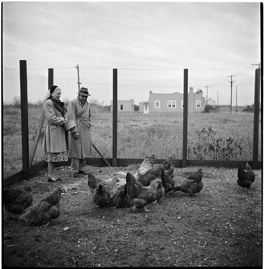 Guy Lombardo [Guy Lombardo and Lilliebell Glenn feeding chickens.]
