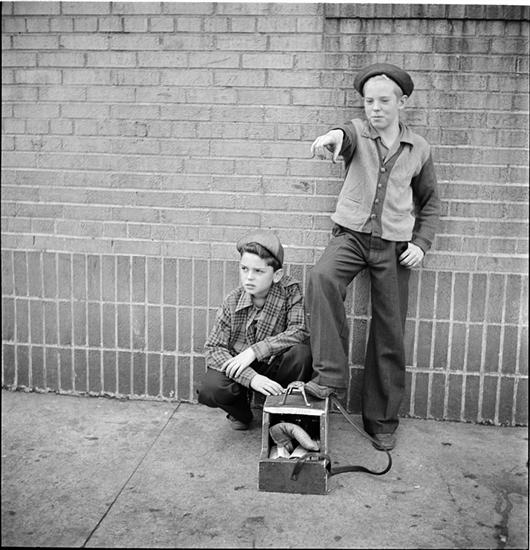 Shoe Shine Boy [Mickey and his friend standing next to his shoe shine stand.]