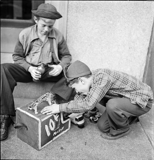Shoe Shine Boy [Mickey and a friend at his shoe shine stand.]